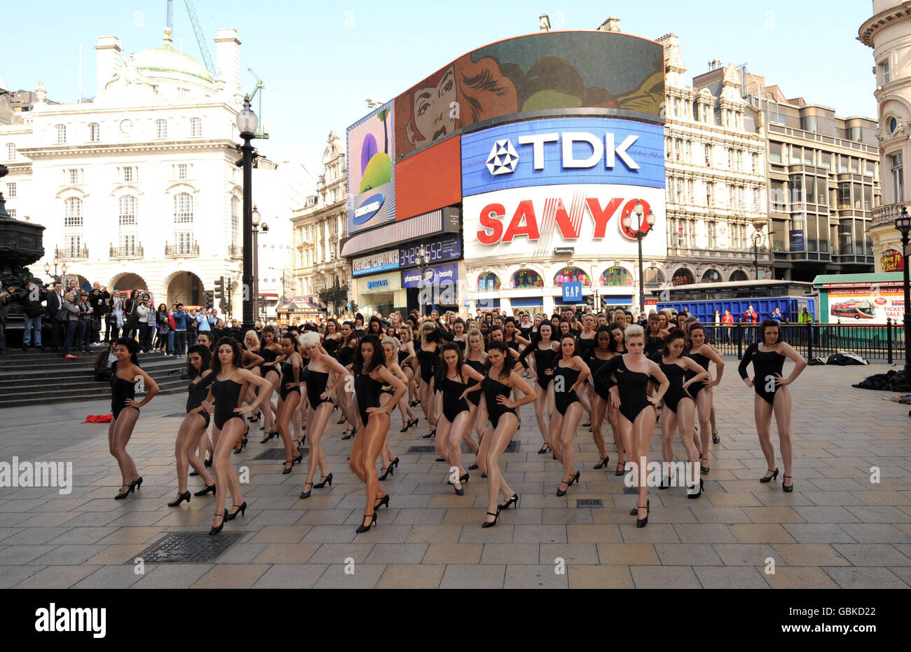 100 Beyonce Lookalikes Perform The Iconic Single Ladies Dance To Promote Trident Unwrapped In Piccadilly Circus Central London Stock Photo Alamy